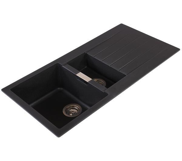автоматична пробка, можливість встановлення дозатора мила, сифон із підключенням до посудомийної машини.