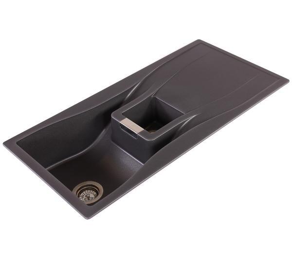 автоматична пробка, можливість встановлення дозатора мила, сифон із підключенням до посудомийної машини.