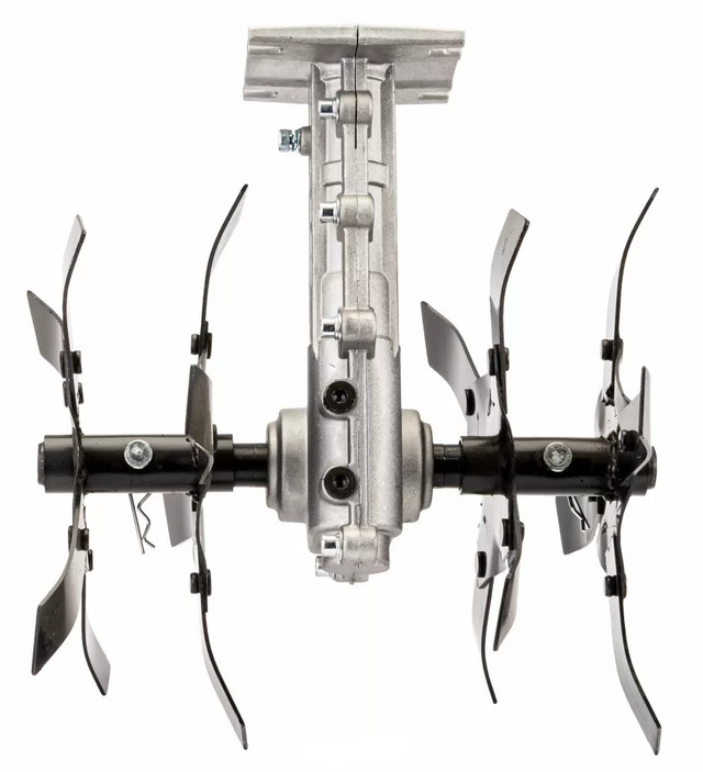 Насадка для бензокоси-мотоблока дає змогу розпушувати й аерувати ґрунт, щоб підготувати ґрунт для вирощування рослин.