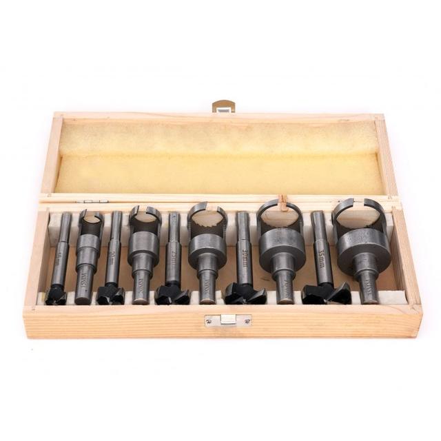 - Набір дає змогу вирізати рівні отвори в деревині та деревних матеріалах, а також видаляти сучки та інші дефекти і маскувати їх заглушками.