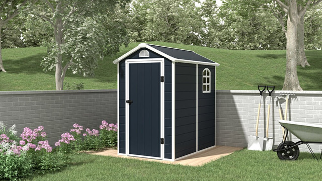 Садовий будиночок VERMONT - чудова альтернатива класичним садовим навісам. Ця сучасна комора забезпечить ідеальні умови для зберігання всіх необхідних садових інструментів, обладнання та аксесуарів, наприклад, газонокосарок, лопат, відер.