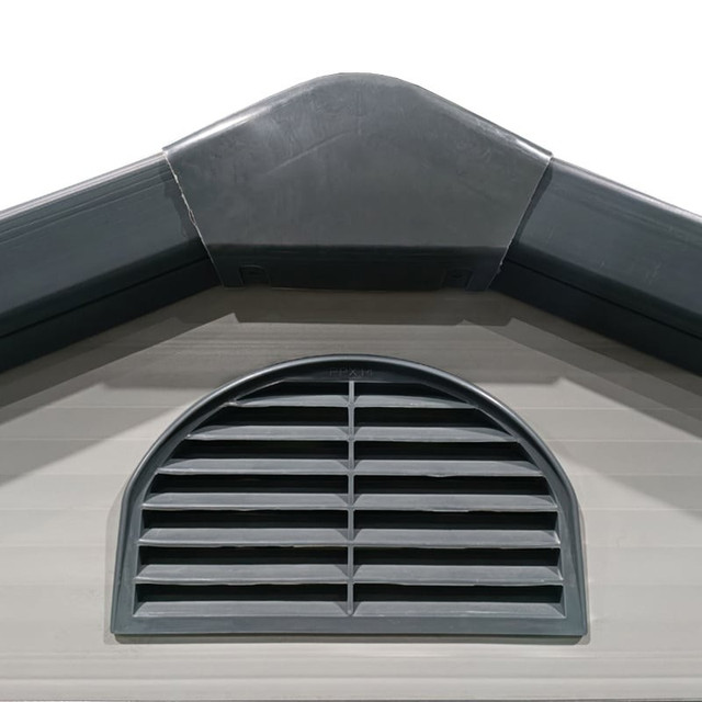 Садовий будиночок обладнаний вентиляційною панеллю, яка забезпечує правильну циркуляцію повітря всередині споруди, не допускаючи утворення всередині вологи, яка може викликати іржавіння металевих елементів. Похилий дах захищає конструкцію від скупчення на ній снігу і дощової води. Якість виготовлення та універсальний дизайн гарантують довговічність і можливість адаптації практично до будь-якого садового облаштування.