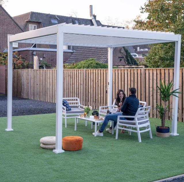 Gutroof - виробник функціональних і довговічних рішень, які дадуть вам змогу відкрити для себе нову якість відпочинку в саду. Садова альтанка Premium White 3x4 м виготовлена з високоякісних матеріалів, що гарантує її довговічність і стійкість до несприятливих погодних умов. Завдяки легкій алюмінієвій конструкції альтанка забезпечує стійкість і зручність складання. Рухомі сталеві рейки дають змогу створити частковий або повний захист від сонця. З іншого боку, горизонтальне розташування ламелей робить навіс водонепроникним і забезпечує комфортне перебування на вулиці навіть під час дощу.