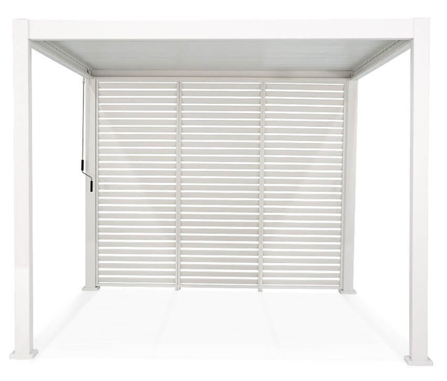 Ширина кожної панелі становить 0,93 м, що ідеально підходить для покриття стіни альтанки довжиною 3 м. Для покриття однієї стіни вам знадобиться 3 комплекти панелей. Монтаж панелей простий і його можна виконати самостійно завдяки інструкції, що додається, і всім необхідним елементам у комплекті. Вони доступні у двох розмірах (93 см для альтанки завширшки 3 м і 123,5 см для альтанки завширшки 4 м) і двох кольорах: білому й антрацитовому.