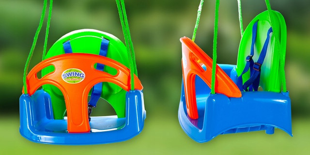 - На гойдалці можуть кататися маленькі діти, встановивши спереду бар'єр.