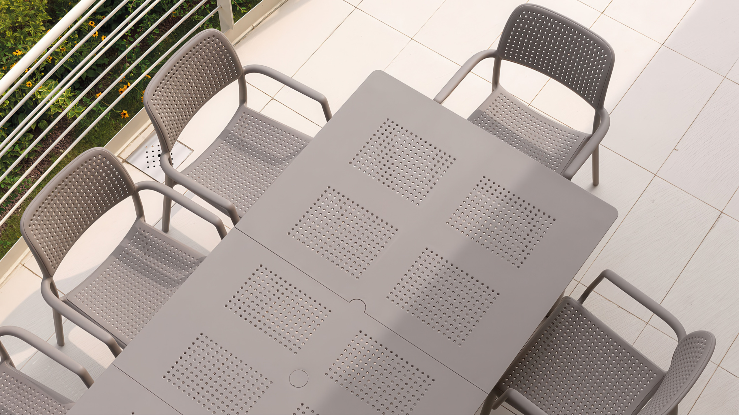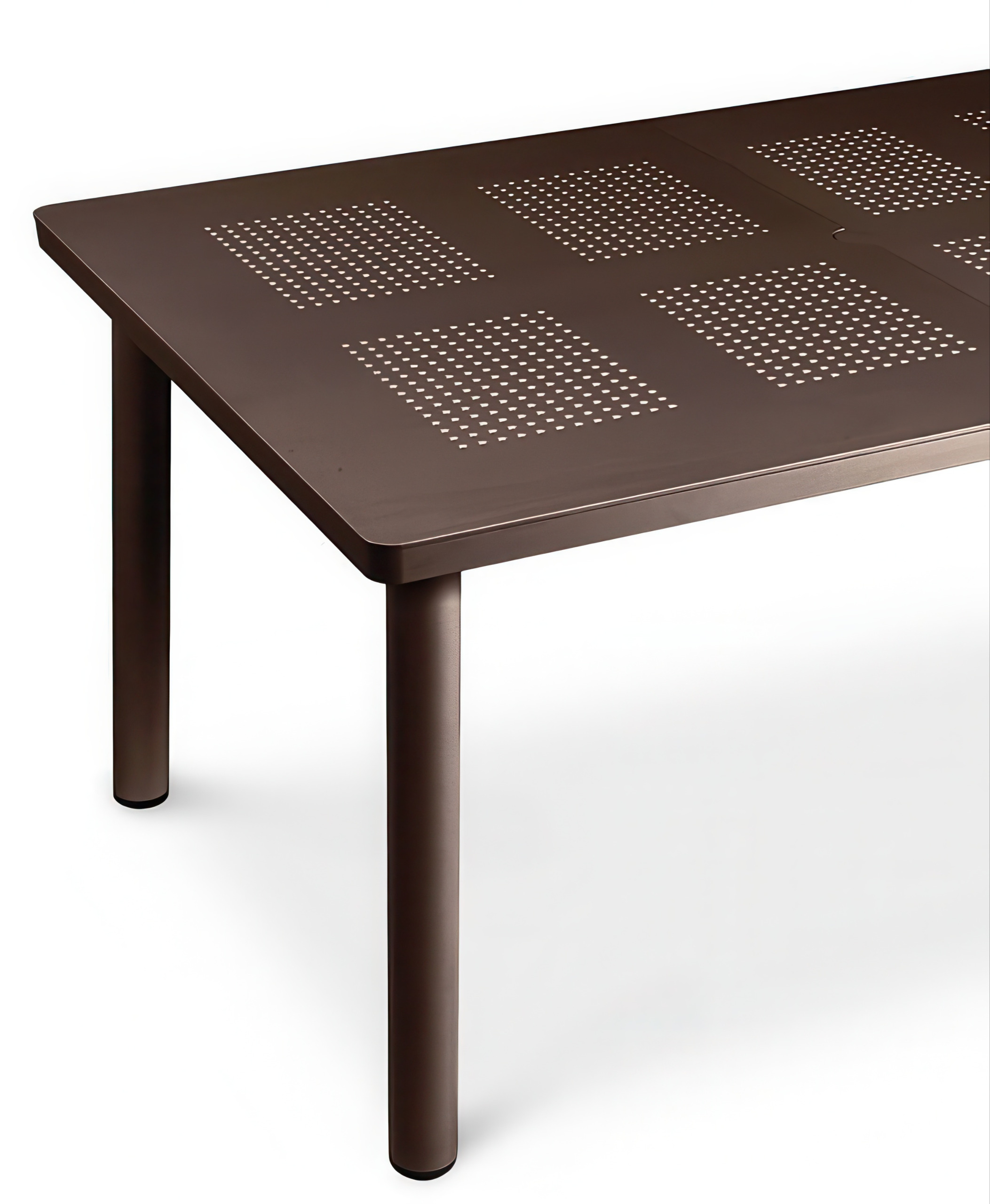 Модульний садовий стіл Nardi Libeccio 160 поєднує в собі функціональність нових технологій з італійською стилістикою. Має цілий ряд практичних переваг та відмінний вигляд - тобто все те, що є найважливішим у меблях для дому або офісного приміщення. Фірмовим знаком моделі Nardi Libeccio 160 Caffe є довговічність. Застосування в столі для ресторану, готелю чи саду найкращих доступних компонентів має своє відображення в ціні, проте економічний рахунок все одно виходить на великий плюс. Кавовий стільниця з ажурним візерунком протягом багатьох років зберігає яскравість кольору. Це завдяки поліпропілену з додаванням скловолокна, стійкого до ультрафіолетових променів і погодних умов, простого в догляді та безпечного для здоров'я і навколишнього середовища матеріалу. Рама та ніжки столу Nardi Libeccio 160 виготовлені з міцного, порошково пофарбованого алюмінію. Таким чином, меблі виглядають чудово навіть після багатьох років інтенсивного використання, тоді як столи з магазинів потрібно було б змінити вже кілька разів. Якість продукту підтверджує сертифікат CATAS, який дозволяє використовувати меблі в громадських місцях - наприклад, у готелях, ресторанах та кафе. Крім того, столи Nardi Libeccio 160 Caffe можна легко адаптувати до поточних потреб. Для цього служать регульовані ніжки та додатковий модуль стільниці. Подовження садового столу від 160 до 220 сантиметрів займає короткий час, в результаті чого навіть 8 осіб можуть сидіти разом у повному комфорті, без зайвих незручностей.