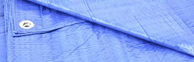 Брезент із поліпропіленових переплетених ниток, покритих з обох боків шаром поліетилену. Краї, посилені мотузкою. Алюмінієві люверси з інтервалом 1 м.