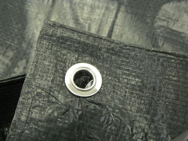 Брезент із поліпропілену, вкритий з обох боків шаром поліетилену. Посилені мотузкові петлі. Алюмінієві кільця з інтервалом 1 м.