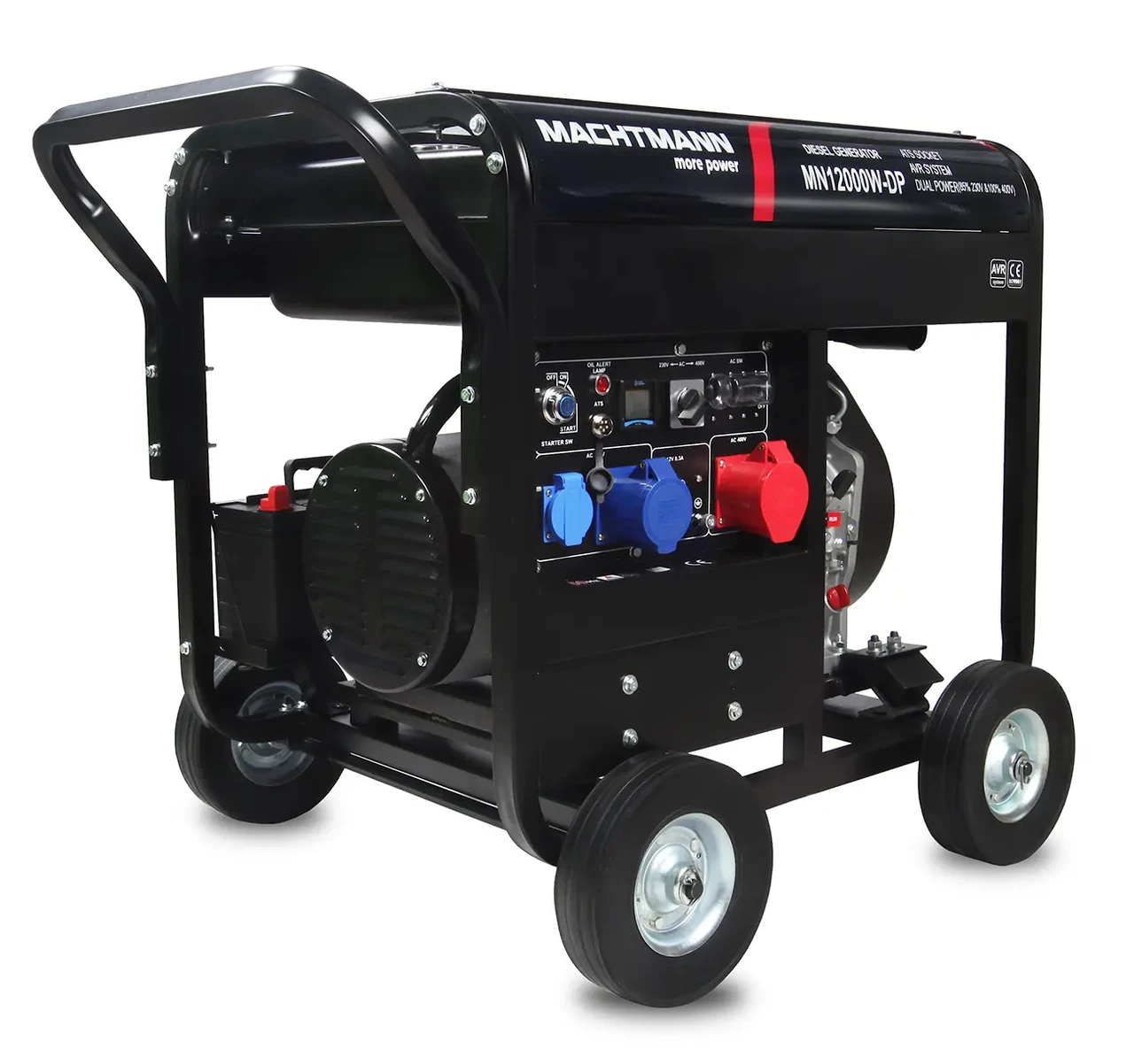 Трифазний дизельний генератор Machtmann 12000W-DP — потужне та надійне джерело енергії для промислового, комерційного й побутового використання. Оснащений двигуном об’ємом 633 см³ і системою DualPower, він забезпечує до 9500 Вт потужності, стабільно живлячи як трифазне, так і однофазне обладнання.